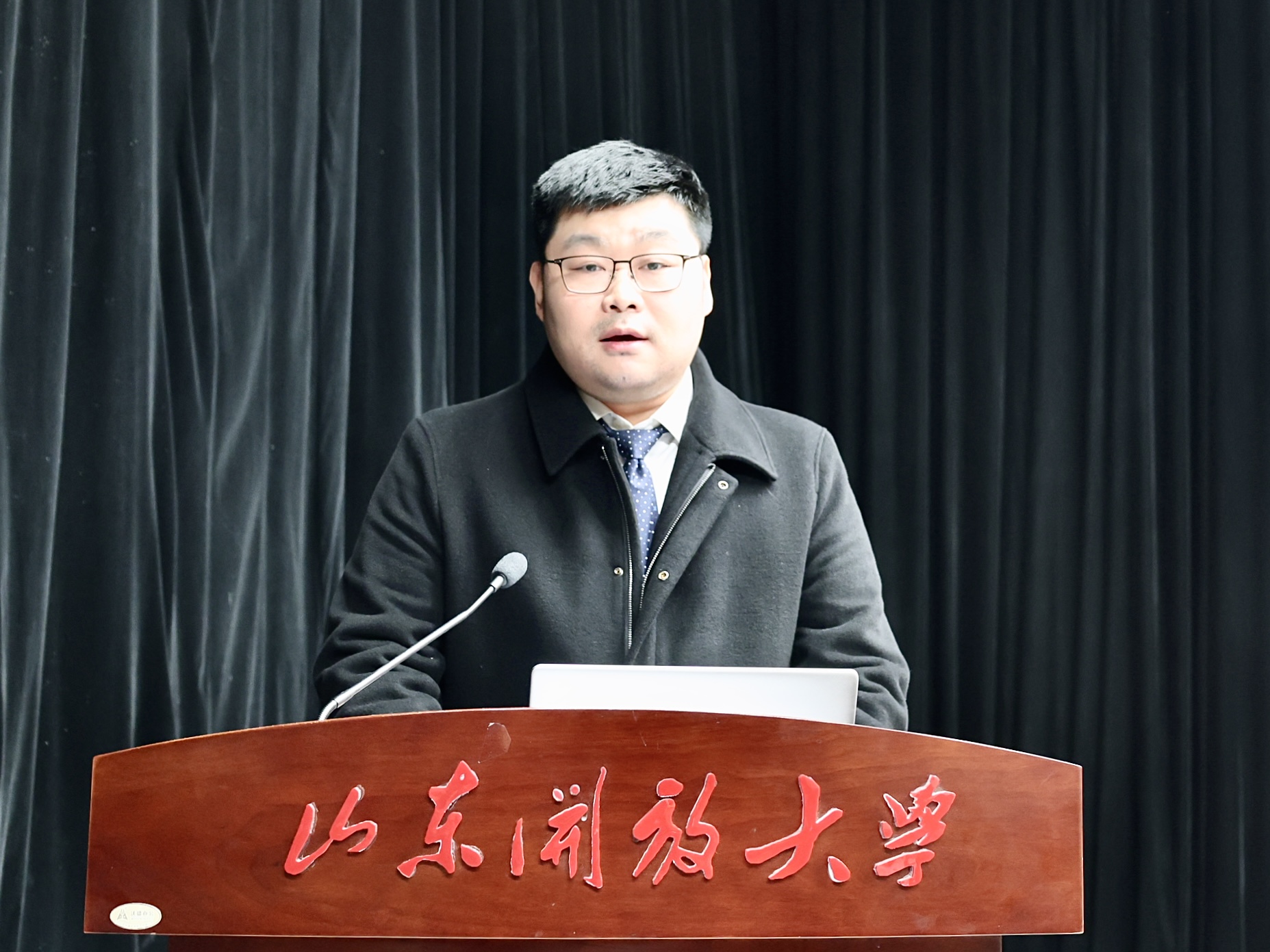 徐文谋以《扎根齐鲁沃土 共赴终身成长之约》为题,为新生讲开学第一课。他回溯了学校46年的发展历程,指出党的二十届四中全会为“十五五”时期教育发展擘画了宏伟蓝图,明确提出了“统筹教育强国、科技强国、人才强国建设”“一体推进教育科技人才发展”的战略部署,这正是学校自1979年创办以来始终践行的发展内核。如今,学校已构建了覆盖10个学科门类的64个本专科专业体系,通过灵活的教学模式、优质的资源建设和完善的支持服务,精准对接山东产业发展需求,成为区域人才培养的重要基地。建校至今,学校累计培养本专科毕业生超百万,开展非学历教育逾500万人次,以实际行动为筑牢区域高质量发展的人才根基贡献力量。他强调,全会提出的“深入推进数字中国建设”为学校改革发展指明了方向,学校将紧跟国家战略部署,持续锚定社会需求深化教育教学改革,以数智化赋能资源优化配置,构建开放协同的育人生态,在教育与科技的深度融合中,培育更多适配新质生产力发展的高素质技术技能人才。他向广大学子提出三点殷切希望:一是追求理想、厚德为先,做“德润齐鲁”的践行者;二是勤学善思、精技强能,做“终身学习”的奋斗者;三是勇担使命、实干笃行,做“强国建设”的贡献者,并勉励大家将个人理想融入国家发展大局,在齐鲁大地上书写无愧于时代的精彩人生。