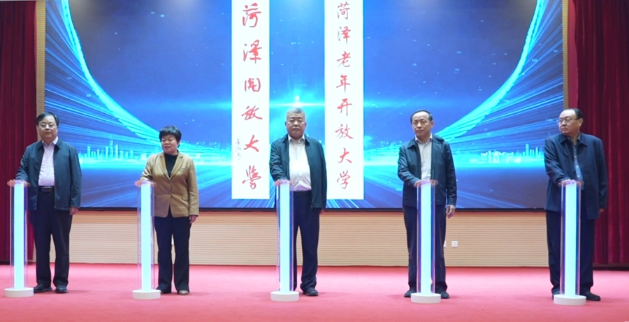10月28日,菏泽开放大学、菏泽老年开放大学揭牌仪式在菏泽职业学院大学生科技园三楼报告厅举行。山东省教育厅二级巡视员、民办教育与继续教育处处长邓俊庆,山东开放大学党委副书记、校长司家军,菏泽市政府副市长冯艳丽,菏泽职业学院党委书记张庆国,党委副书记、院长袁宗建等领导共同揭牌。菏泽市教体局党组书记、局长杨彬主持仪式。