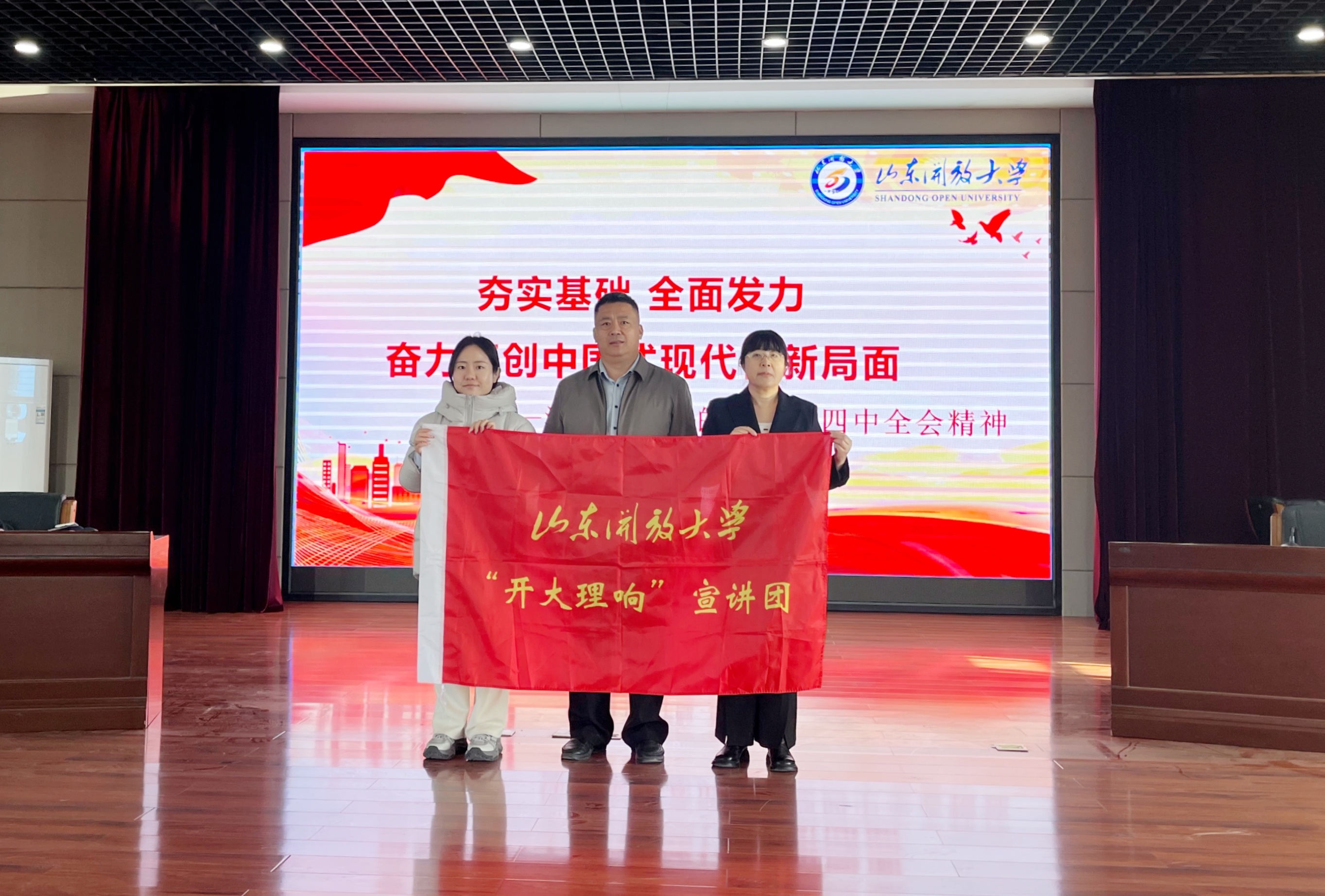 11月27日,学校“开大理响”宣讲团走进沂水县杨庄镇,开展党的二十届四中全会精神专题宣讲活动。学校党委委员、宣传部部长刘忠强,杨庄镇党委副书记、镇长庞京华,学校第一书记工作组成员参加活动。