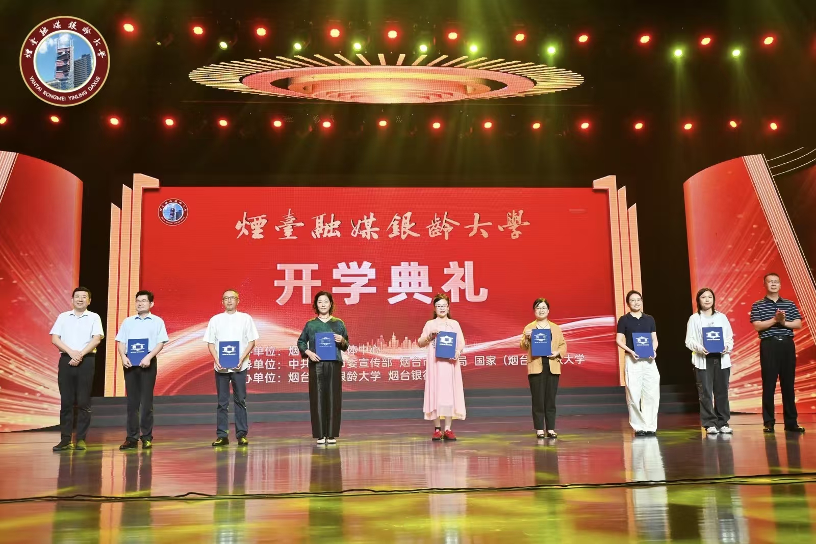 金秋送爽,硕果飘香。2025年9月11日烟台融媒银龄大学2025年新学期开学典礼,在烟台市融媒体中心演播大厅隆重举行。烟台职业学院党委委员、副校长、烟台开放大学校长邵侠,烟台市民政局副局长徐明浩,烟台传媒集团总经理张璇,烟台银行副行长姜雷及社会各界代表六百余人参加开学典礼。开学典礼上,2024级舞蹈班、模特班、朗诵班、器乐班等学员表演了精彩的节目。节目银韵四溢,催人奋进,展现了烟台银龄人良好的精神风貌。