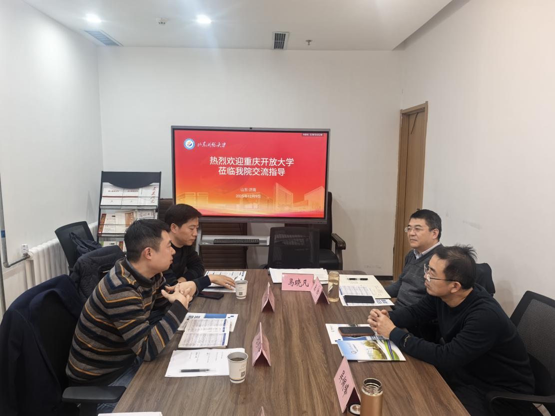 高继宽首先向刘彦辉一行的到访表达了诚挚欢迎。随后,他围绕山东开放大学及成人教育学院的当前发展、特色定位与核心优势作了简要说明,并着重分享了学院在学历继续教育模式创新、学习资源开发、校外教学点规范化管理等方面的实践经验和阶段性成果。刘彦辉介绍了重庆开放大学的办学特色与发展思路,并就当前成人教育中遇到的共性问题和挑战进行了交流和探讨。