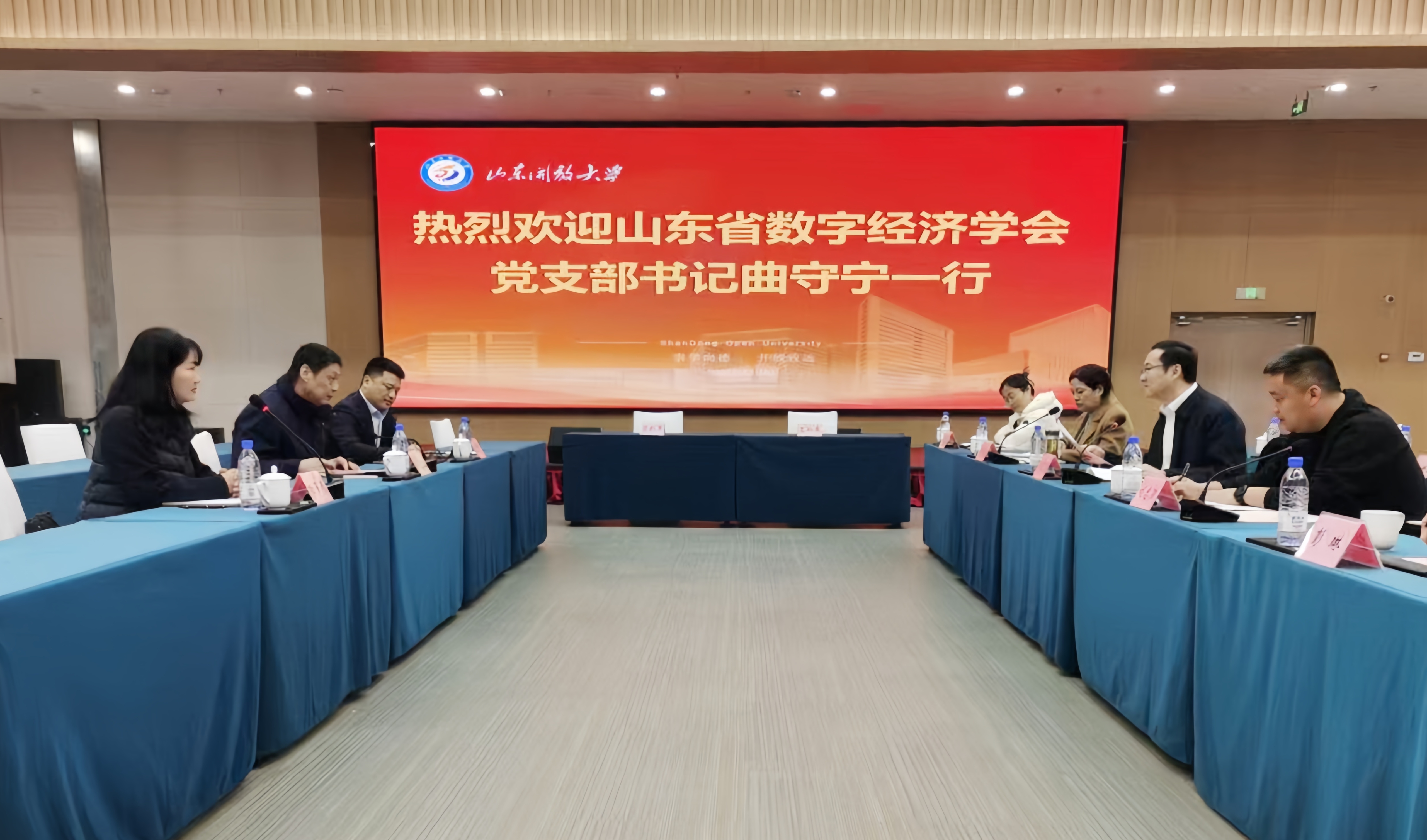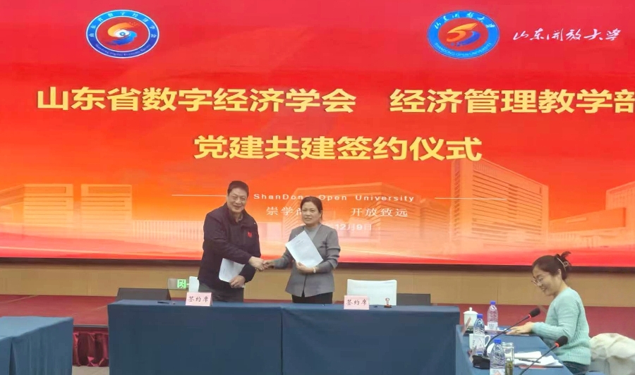 为深化校会合作、强化党建引领,12月9日,山东省数字经济学会党支部书记曲守宁、学会秘书长杨丽娟一行到访我校高新校区,与学校经济管理教学部开展交流并签署党建共建协议。学校党委委员、副校长郭丕宽主持座谈会,党委委员、宣传部部长刘忠强参加。