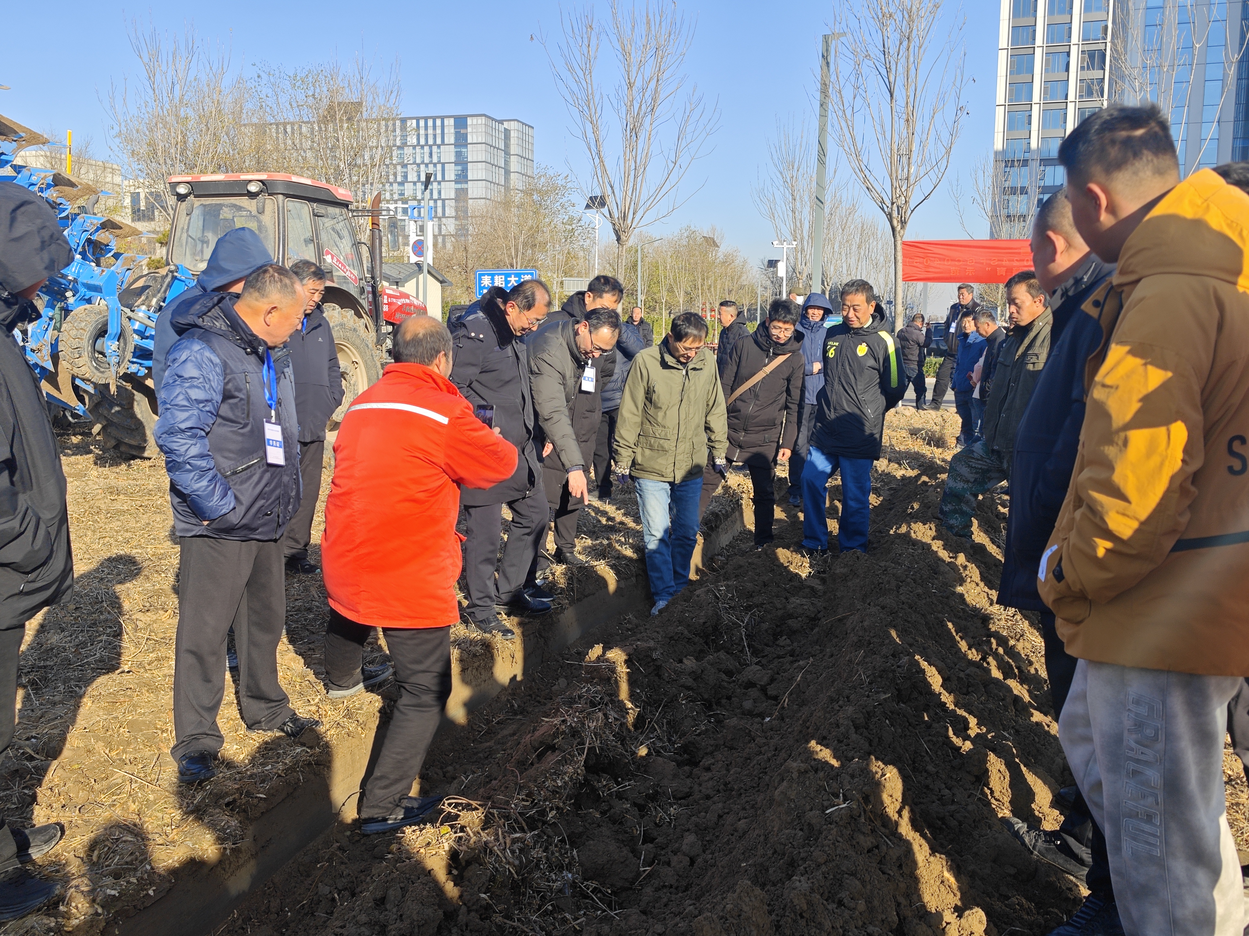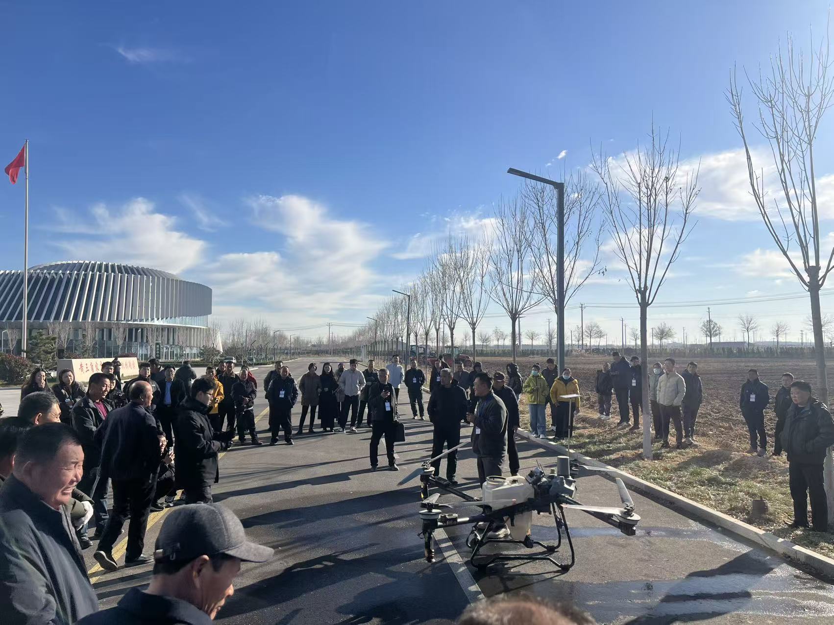 为确保培训实效,本次培训班精心设计课程体系,采用“理论+实践+观摩+考核”全链条培养模式,每个班级累计授课40学时,培训周期为7天。培训坚持重实践、强技能导向,一改“课堂灌输”传统模式,将教学主阵地搬到田间地头。196名学员走进黄三角农高区试验田,开展4米条播机、旋耕起垄一体机等主流农机具的实操训练。同时系统学习无人机的操作与使用技巧,掌握植保飞防等现代农业技术。实操现场,学员们热情高涨,纷纷上手操作、交流经验,形成了比学赶超的良好学习氛围,在真实作业场景中显著提升了设备操作水平和应对复杂农情的能力。此外,培训班组织学员赴多家智能农机装备企业观摩学习,了解行业前沿技术,拓宽发展视野。