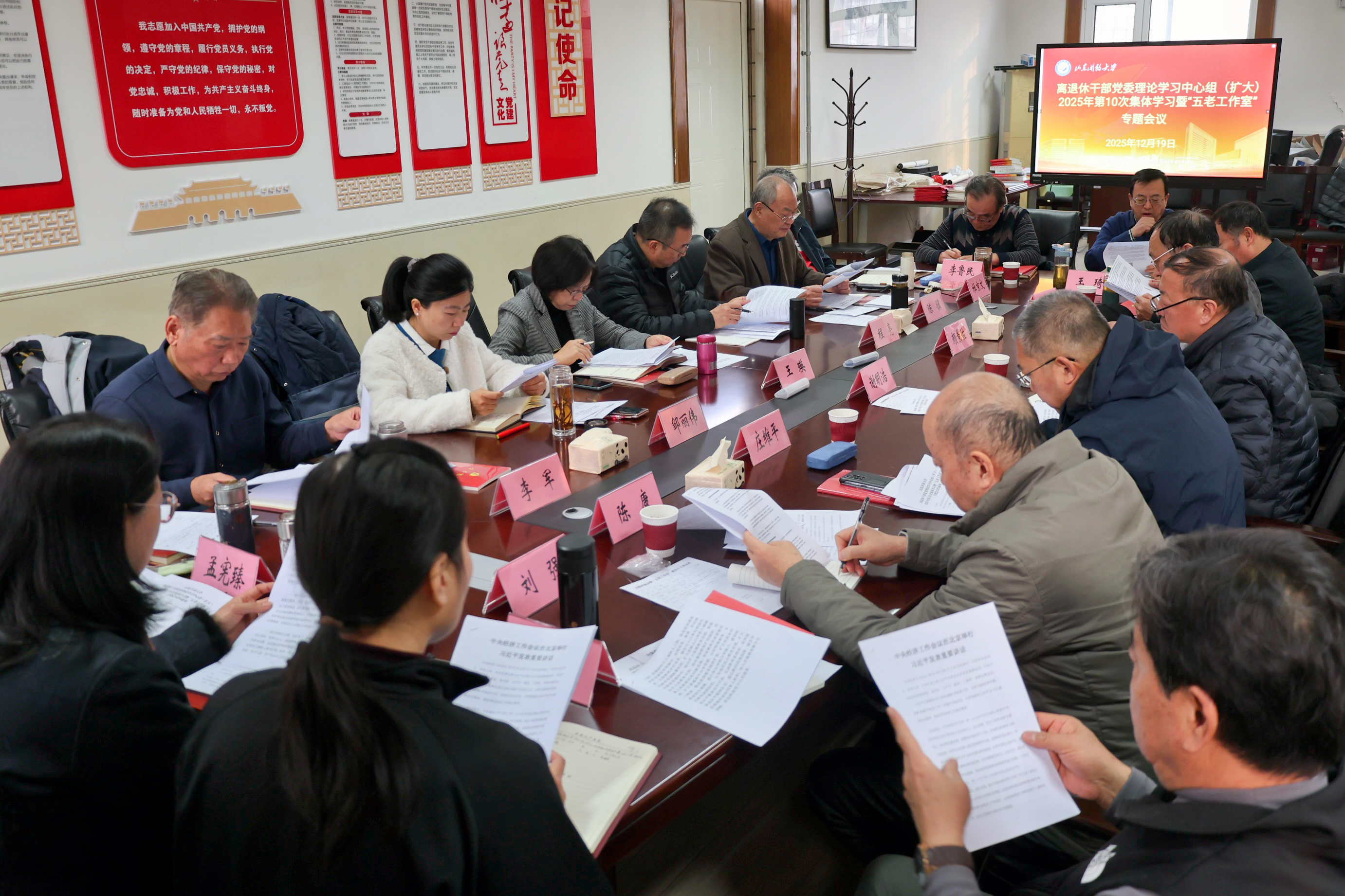 12月19日上午,山东开放大学关工委“五老工作室”成立仪式在舜耕校区老干部活动中心举行。学校党委副书记、关工委主任王瑛出席仪式并讲话,党委委员、组织部部长、关工委副主任程亮参加仪式,离退休干部党委书记陈骥主持仪式。