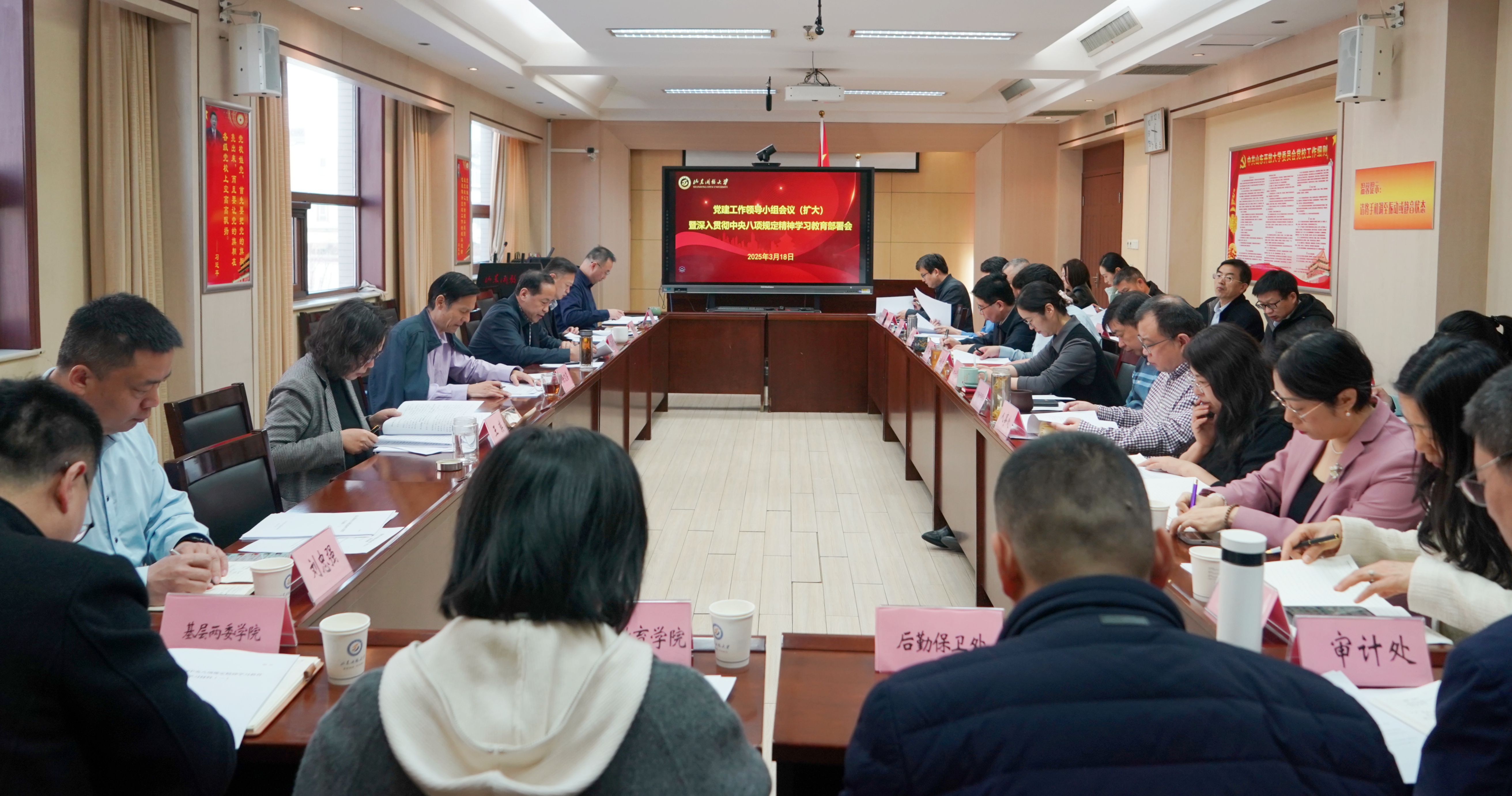 3月18日,学校召开党建工作领导小组会议(扩大)暨深入贯彻中央八项规定精神学习教育工作部署会。党委书记徐文谋出席会议并讲话,党委副书记、校长司家军主持会议。学校在家党委班子成员、党的建设工作领导小组成员、全体正处级干部参加会议。