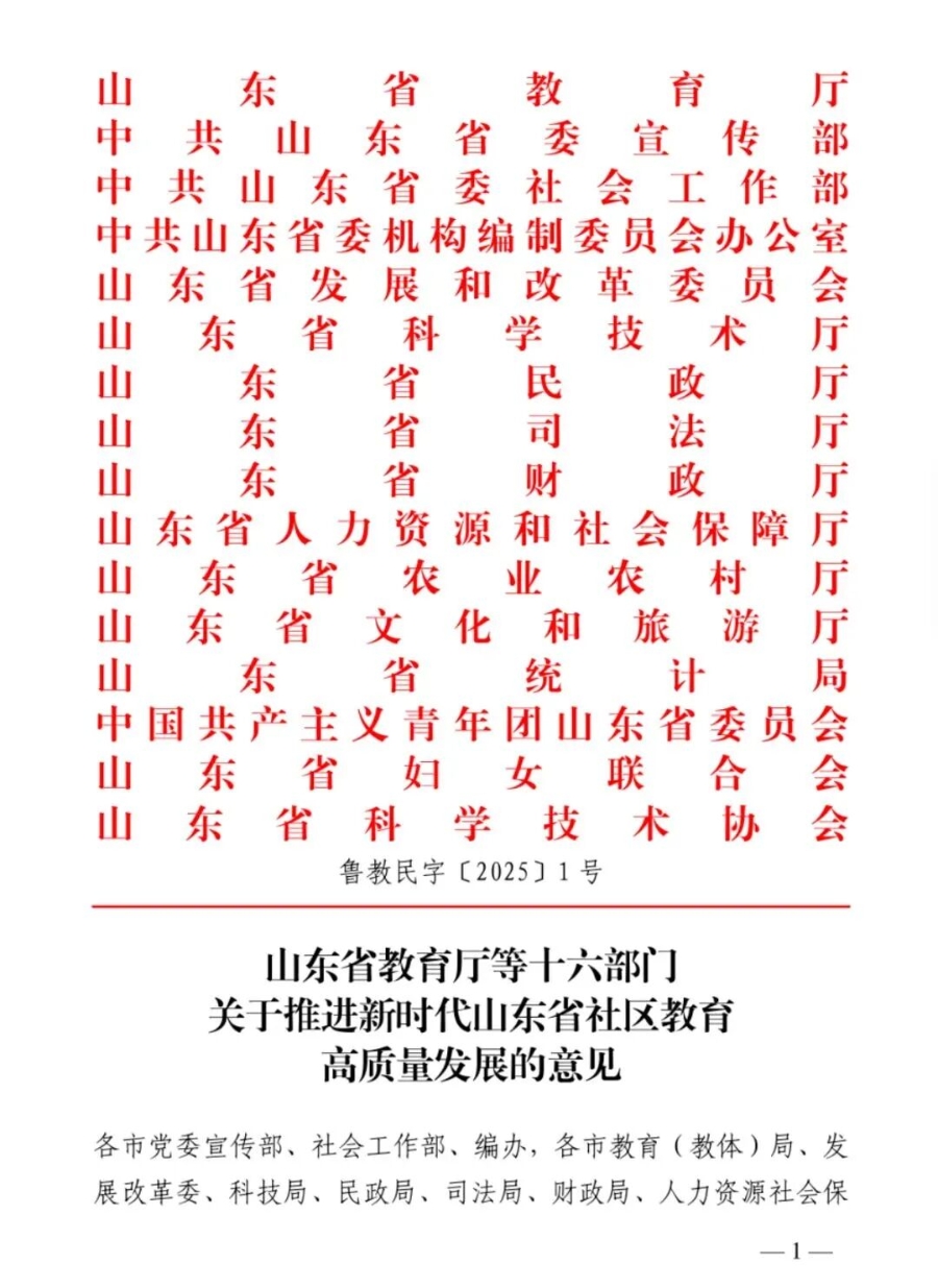 12月25日,山东省教育厅等十六部门联合印发《关于推进新时代山东省社区教育高质量发展的意见》。