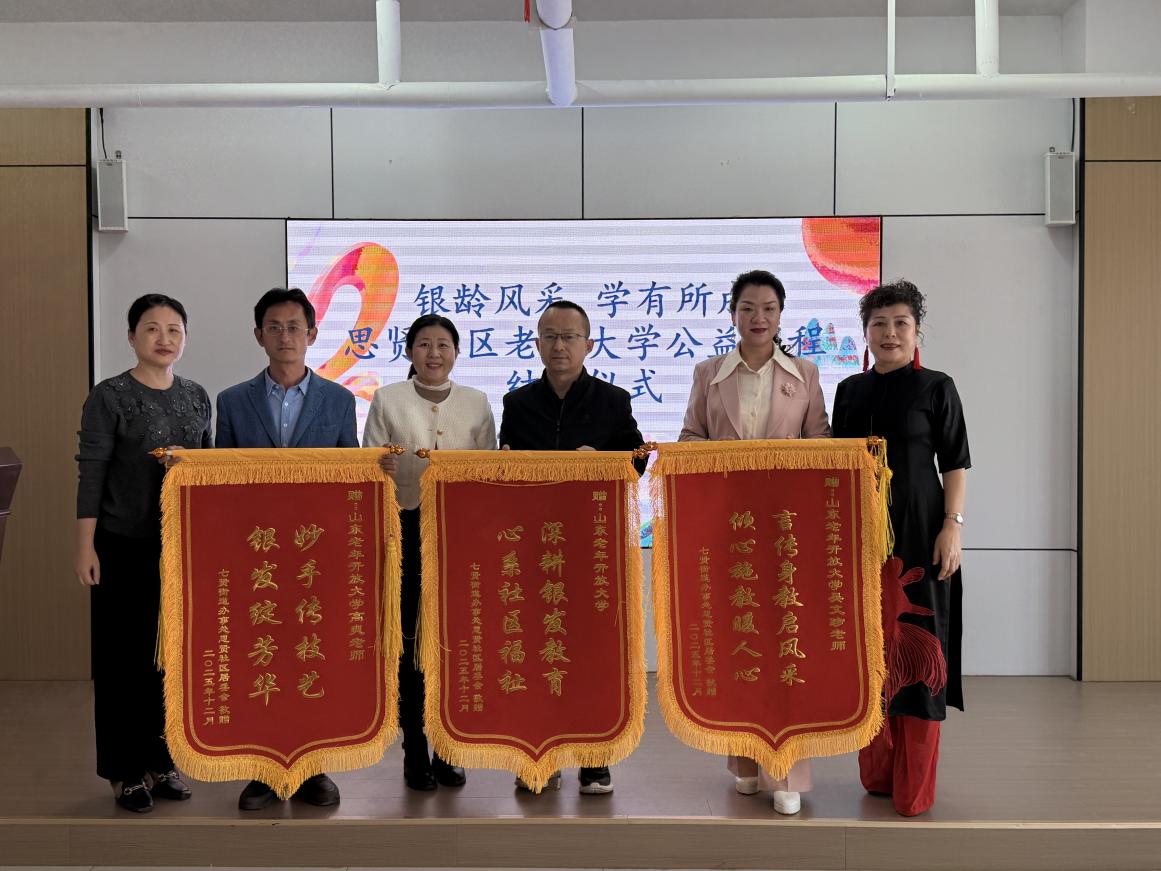 1月6日下午我校老年教育学院受邀参加济南市七贤街道思贤社区老年公益课程结业仪式,并代表学校接受社区赠送锦旗